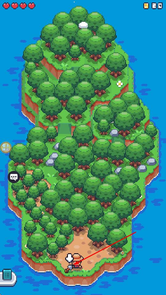 2、在岛屿地图界面,点击高亮显示的区域图标进入场景,通过滑动屏幕操控角色探索,长按目标物品收集木材、果实等基础资源,为初期生存储备物资。