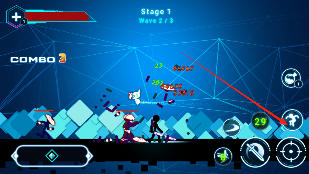 1、基础操作体系:点击屏幕控制攻击与跳跃,滑动屏幕切换武器,长按屏幕触发必杀技,通过组合操作完成复杂连招任务,操作简洁直观,让玩家专注战斗策略规划。