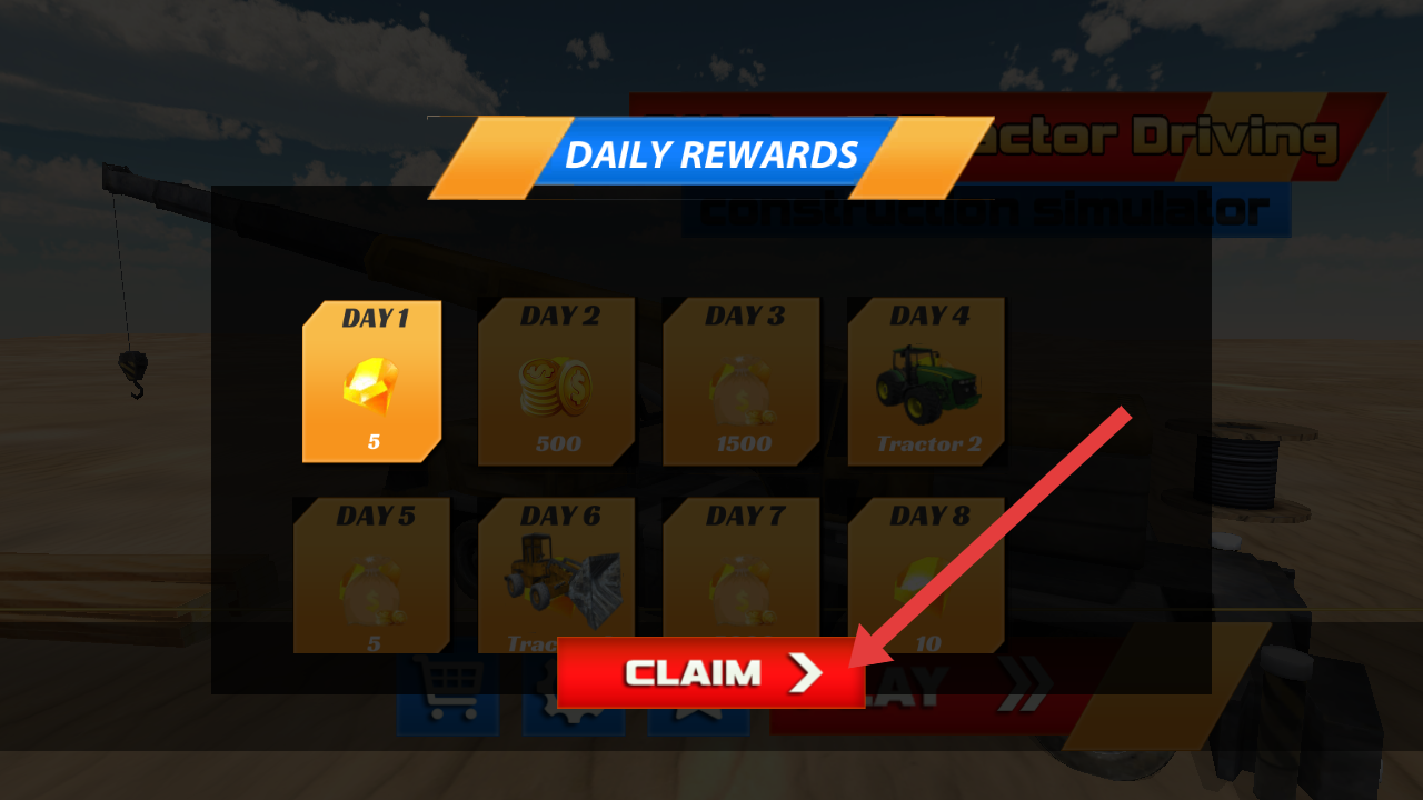 2、进入游戏后,若弹出【DAILYREWARDS】的界面,需要点击【CLAIM】领取每日奖励。