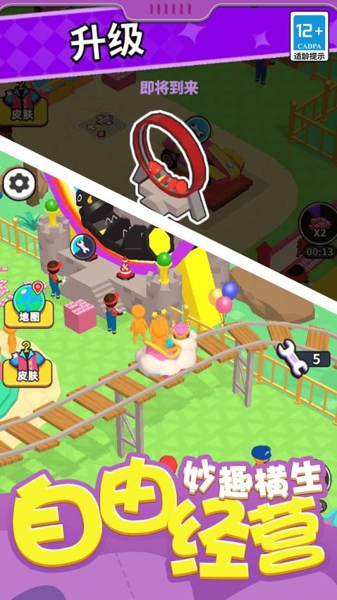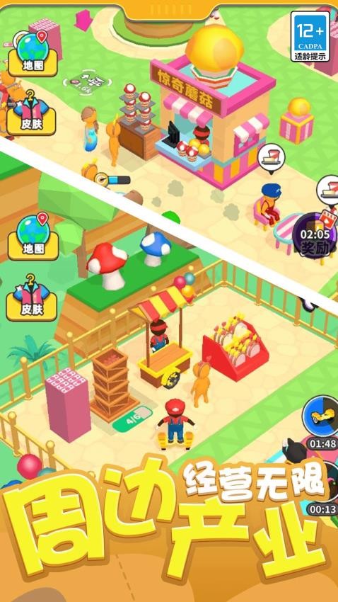 2、智能经营辅助系统,会根据乐园运营状况提供优化建议,新手引导循序渐进,让玩家能轻松掌握经营管理要领。