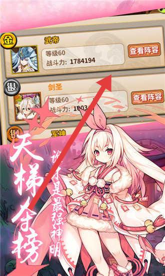 2、在“天梯夺榜”界面,点击“武帝”的【查看阵容】,了解高战力角色配置,借鉴养成思路,提升自身队伍。
