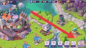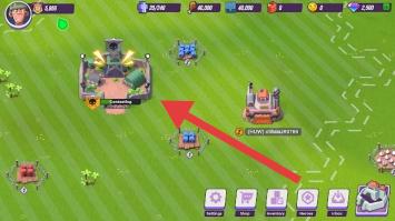 1、进入游戏主界面,参与建造/升级建筑,为了扩展领地,强化基地功能点击箭头指向的地图,为战斗储备资源。