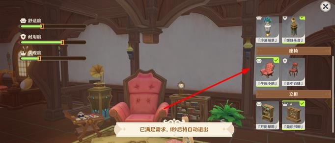 2、点击【布置】选择:【茶歇餐点】【缓舒乐音】【午间小憩】【盈积书橱】,规划行动路线。