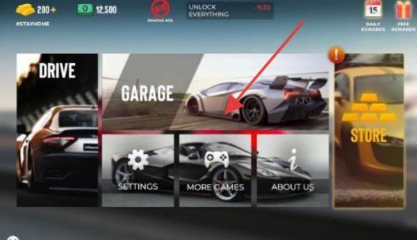 3、返回主界面,点【GARAGE】改装车辆(升级性能/外观),或选【DRIVE】挑战新赛道。