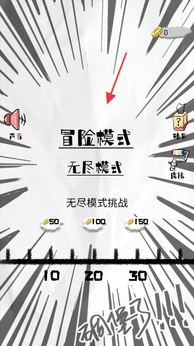 1、进入游戏主界面,点击【冒险模式】,进入关卡选择页面。