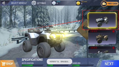 2、从多款ATV四轮车中挑选座驾,感受不同车型的操控特性。