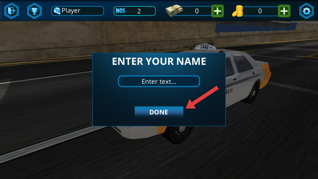 1、在“ENTER YOUR NAME”输入框填写名称后,点击【DONE】按钮,完成玩家信息设置并进入游戏。