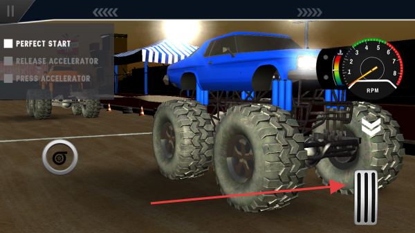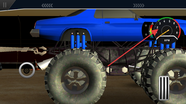 1、观察蓝色越野车仪表盘,让转速指针保持在绿色区域,把控油门,为起步做准备。
