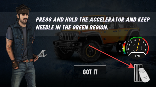 2、按提示【PRESSAND】,长按油门,维持指针在绿色区,点【GOT IT】确认操作。