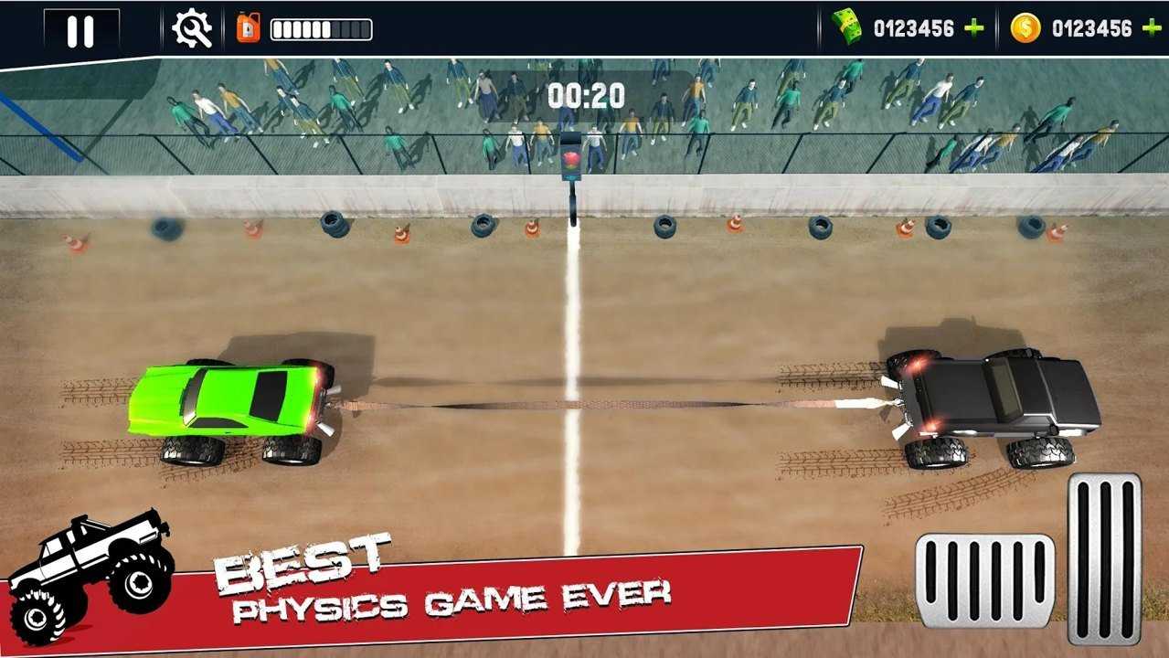 3、直观操作界面:提供油门刹车方向盘等虚拟按键,搭配实时扭矩表与绳索张力提示,助力玩家精准调控车辆动力输出。