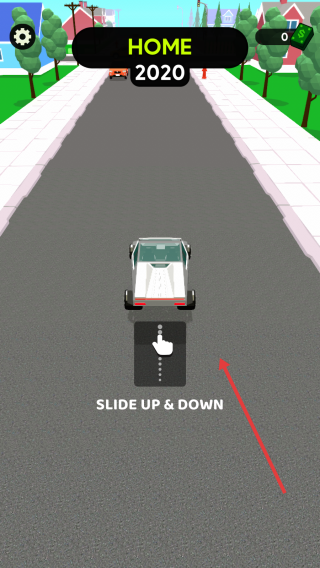 1、在“HOME2020”界面,滑动加速条(SLIDEUP&DOWN),启动白色小车。