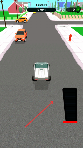 2、进入“Level1”,沿道路行驶,避橙色车辆,用加速条控速度(0MPH起步)。