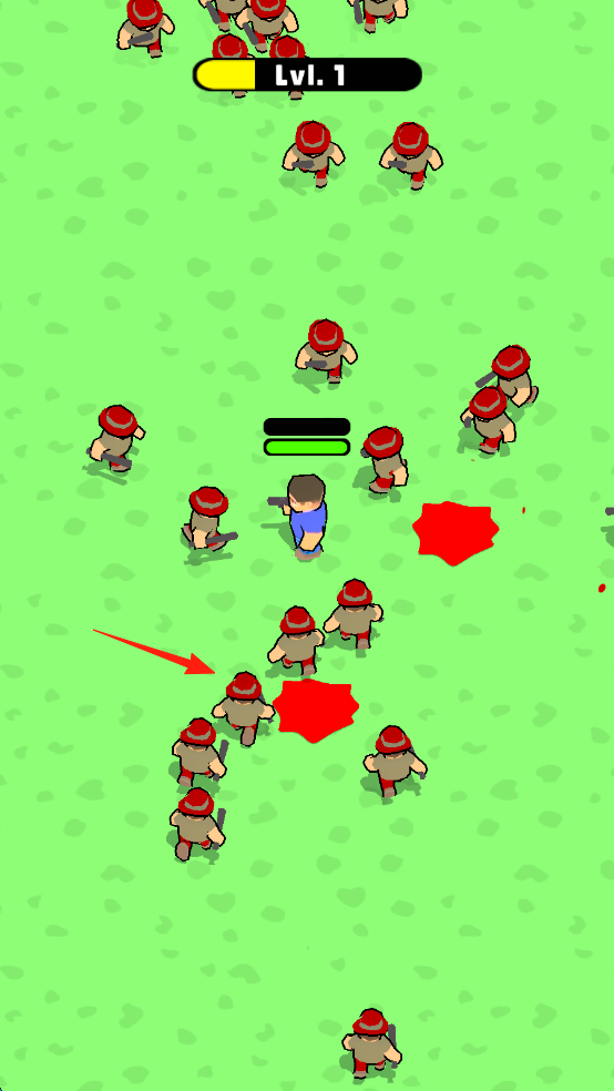 1、进入Lvl.1,操控蓝色角色,用武器攻击红帽敌人(箭头),优先清近程。
