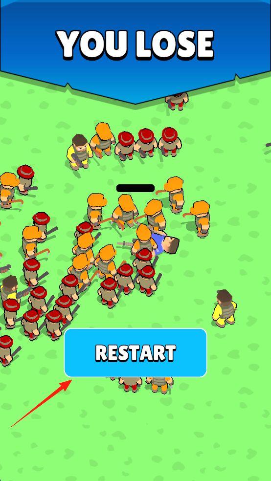 3、失败后,点击【RESTART】,调整策略(集中,分散),突破敌人包围,提升存活。