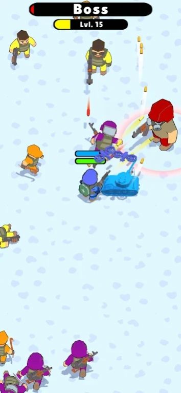突击队人群战斗是一款主打快节奏战斗与策略指挥的动作闯关作品,玩家将化身突击队队长,在枪林弹雨的战场中率领队员突破重围,体验从单兵作战到军团指挥的全维度战斗快感,以写实的3D画风构建城市废墟、丛林战区、军事基地等多元战场,搭配人群战术核心机制滑动屏幕指挥队员分散包抄、集中火力或抢占掩体。