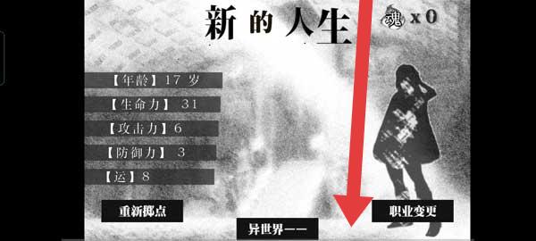 3、角色属性不满意选“重新掷点”刷高属性,到特定阶段用“职业变更”转型,借【魂】解锁强力技能,推进异世界生存。