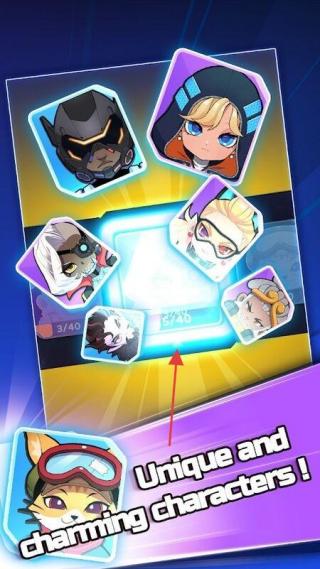 1、英雄差异化设计:每个英雄拥有独特的攻击方式与技能体系——“极光刃”擅长近距离高速斩击,“轰天雷”可部署地雷阵进行阵地战,“量子忍”能释放分身迷惑对手。