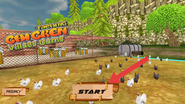 1、玩家可体验养鸡场管理、养殖等玩法,点击【START】可开始游戏,画面呈现养鸡场场景,有鸡群、围栏、设施等元素。