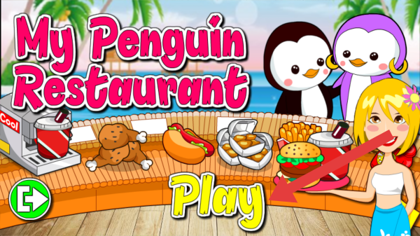 1、画面有企鹅角色、各类美食,还有【Play】(开始游戏)按钮,玩家可经营企鹅主题餐厅,能体验餐厅经营乐趣,通过制作、服务顾客等环节推进。