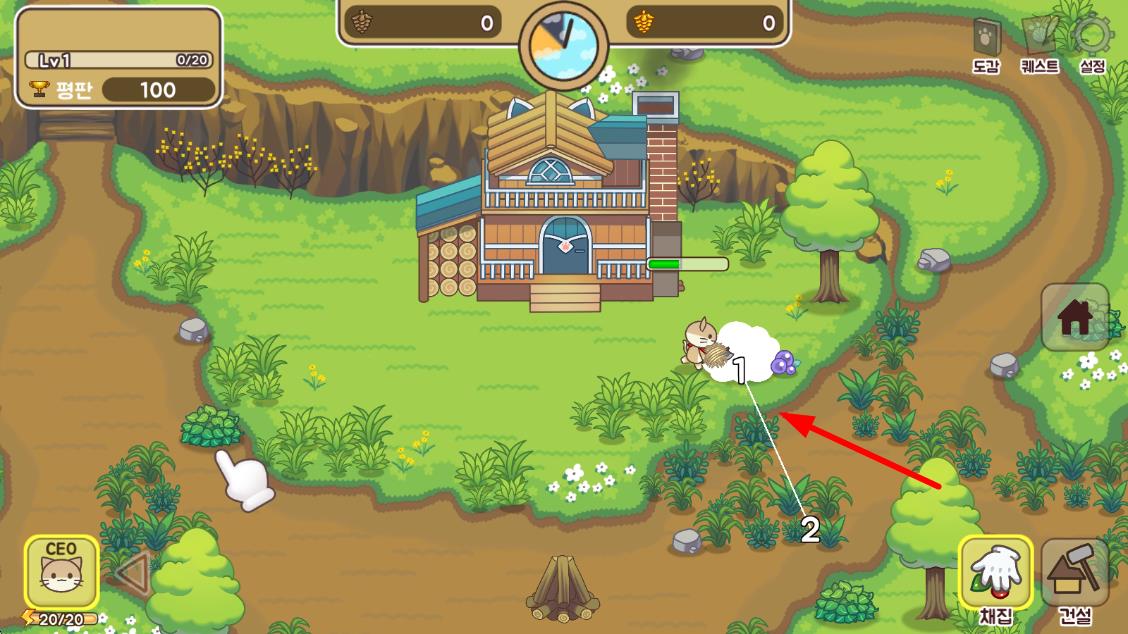 1、进入游戏后点击空地开垦农田,种植小麦、胡萝卜等作物,收获食材用于制作猫咪喜爱的零食,吸引首批流浪猫入驻村庄。