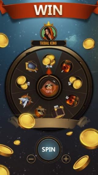 3、画面元素:抽奖轮盘、金币、显示“35SPINS”(35次旋转机会)的标识,以及角色头像等,呈现出胜利后抽奖获取奖励的环节。