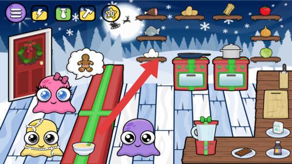 2、圣诞主题关卡,留意粉色怪物想要的姜饼人,收集姜饼食材,利用圣诞限定炉灶制作,完成节日订单。