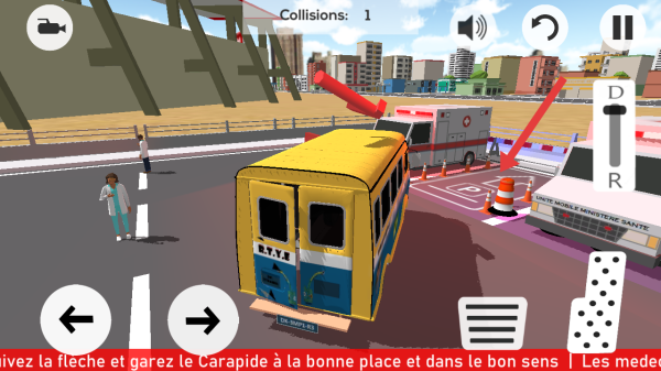 3、需要跟随箭头指示,操控塞内加尔汽车驶向橙色锥形桶标记的车位,完成停车任务。