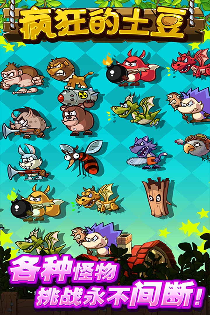 - 疯狂的土豆是一款充满可爱风格的防御类游戏,在这款游戏中玩家将化身土豆先生,守护一个被动物怪物包围的小木屋,尽管周围敌人环伺,土豆先生却毫不畏惧,