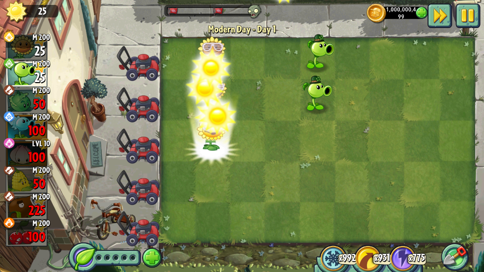 1、首日关卡难度较低,选用小蘑菇开局积累阳光,搭配黄金叶提升经济,利用双重射手与红针花压制僵尸,常规布置即可轻松通关获取基础资源,为后续发展奠定基础。