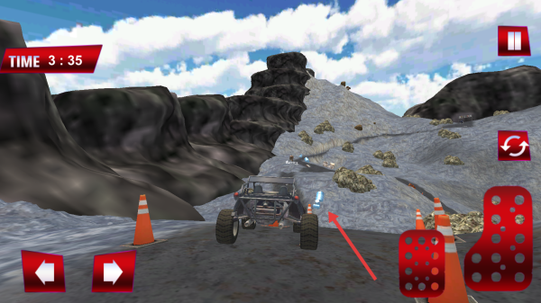 2、在山地赛道,用左右箭头控方向,右侧按键调速度,避路锥、岩石,冲过陡坡。