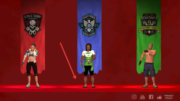 1、选中间绿白装角色,进入山地骑行场景,操控自行车。
