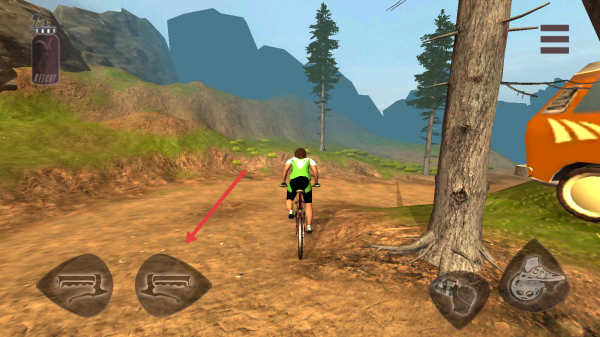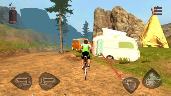 2、用底部按键(左右箭头/特技键),在土路行驶,避障碍(石头、树木),过帐篷、汽车路段。
