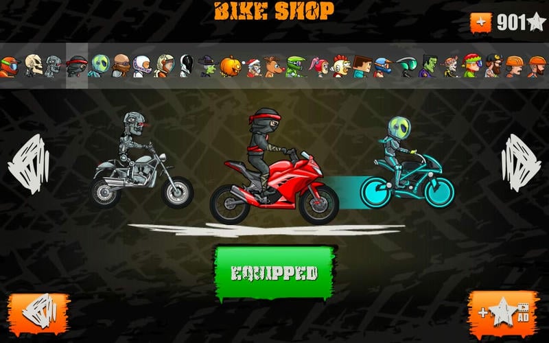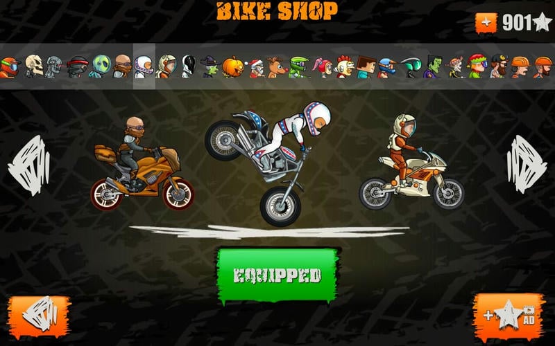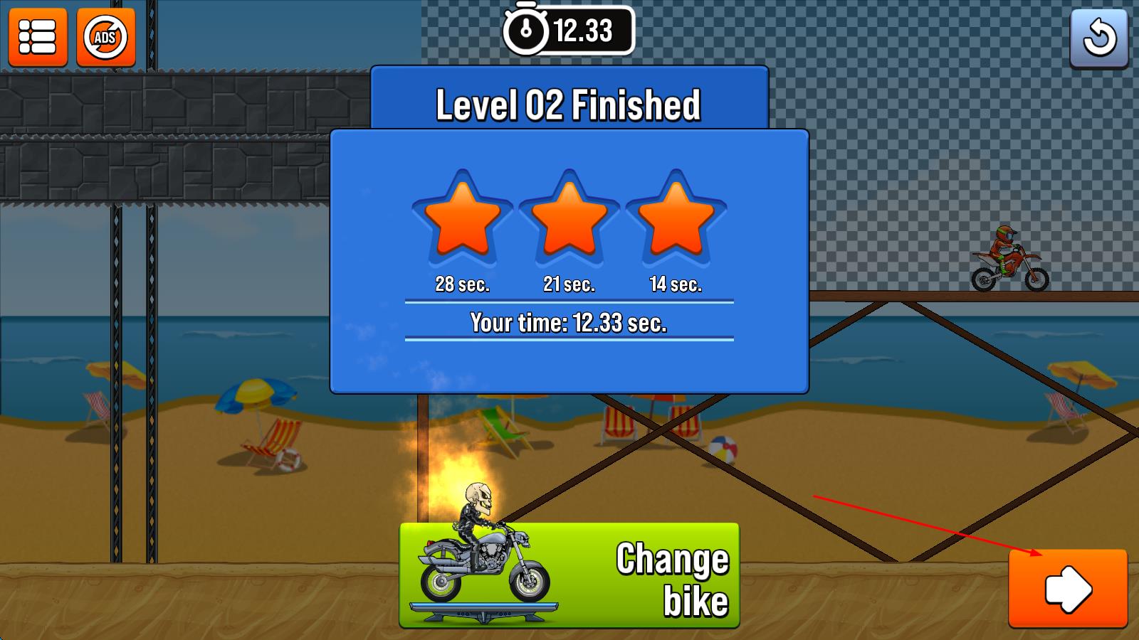 3、休闲卡通风格:采用明快的卡通画面与夸张物理效果,摩托车造型Q萌多样,陷阱设计趣味化,营造轻松刺激的闯关氛围。