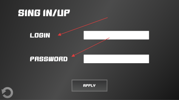 1、在【SINGIN/UP】页面,输入【LOGIN】和【PASSWORD】,点击【APPLY】完成登录,进入游戏。