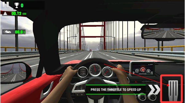 1、开始游戏后,右边按钮是油门,点击可以加速启动赛车。
