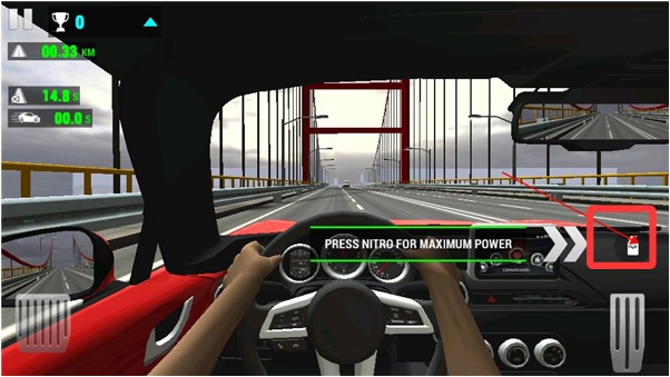 2、左边按钮是刹车,点击可以给赛车减速。