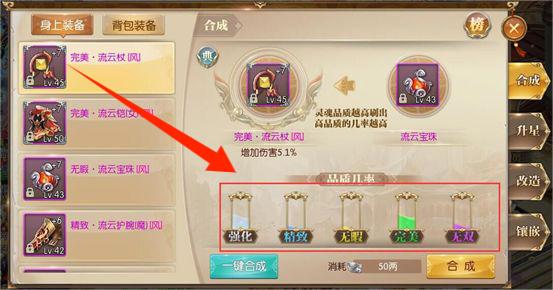 1、进入合成界面,选装备与材料,点击合成,提升装备品质增强属性。