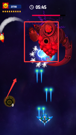 1、开局先熟悉操作,左右滑动控制战机移动,点击屏幕发射子弹。