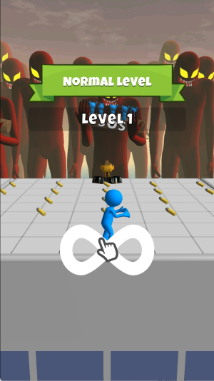 1、观察起始界面蓝色小人与红脸怪兽位置,操控角色向左移动拾取红框标记的子弹,为后续战斗做好准备。