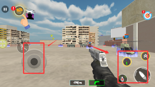 1、开局先熟悉基础操作,左侧虚拟摇杆控制移动,右侧按键进行射击和技能释放。