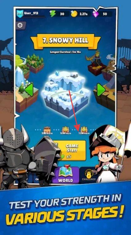 2、选择不同场景关卡,挑战限时生存、怪物波次等玩法,根据存活时间、战斗表现获取奖励。