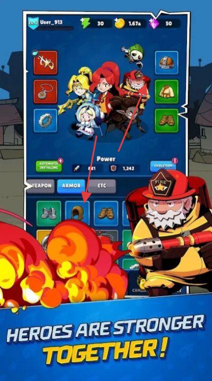 3、收集、培养英雄,为其搭配装备,提升属性,组合英雄阵容,增强整体战力。