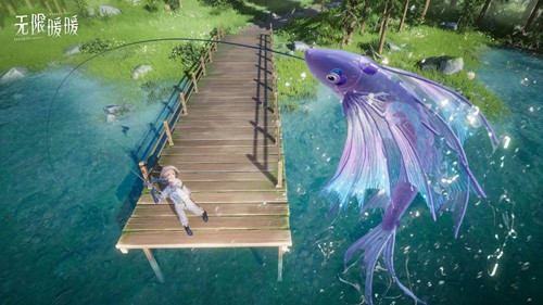 3、花海场景,角色与巨型花卉、泡泡互动,呈现观光玩法景观节点。