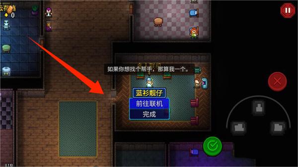 1、首先打开游戏,想要和好友们一起体验联机趣味的玩家,需要进入到大本营当中,找到开启多人联机的NPC,在这里与其对话的过程当中,玩家们就会找到前往联机的选项。