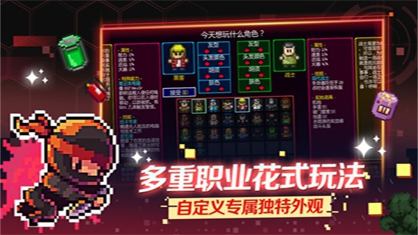 2、多样角色选择:目前超过20个角色可供挑选且还在不断增加,包括酒保科学家计算机天才大猩猩等,每个角色都有独特特点,让玩家体验不同的风格。