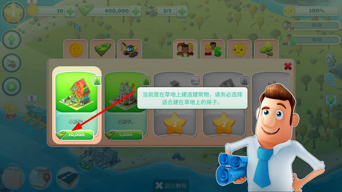 1、进入游戏后在空旷地块上规划主干道与住宅区,点击屏幕放置基础民居与市政设施,如警察局、消防站,奠定小镇发展基础。