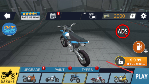 1、点击【TapToRide】,进入摩托车驾驶游戏,选车库中蓝色摩托(点【PLAY】)。