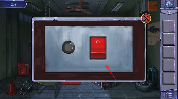 3、找到机关(红箭头),分析开关逻辑(按钮旋钮),结合收集道具,操作解密,推进密室逃脱流程。