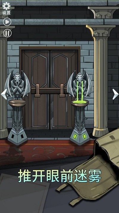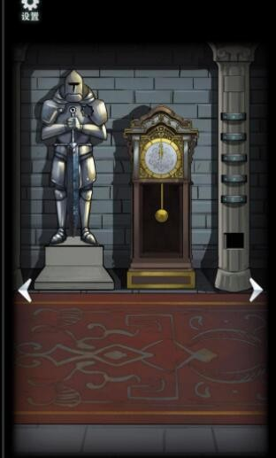 钥匙收集:拾取地上的手套和纸片,在墙上的暗格里获得钥匙,再次左转查看书并对书使用纸片,获取大门两边油灯高度的提示。