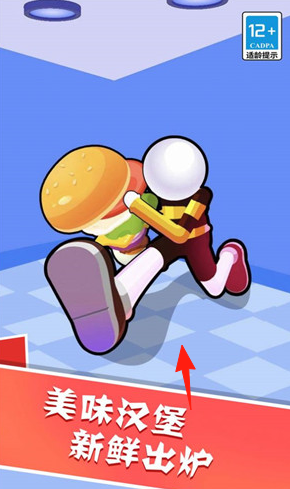 2、制作汉堡(红箭头),点击操作台,搭配食材(面包肉饼),完成订单,满足顾客,提升餐厅口碑。
